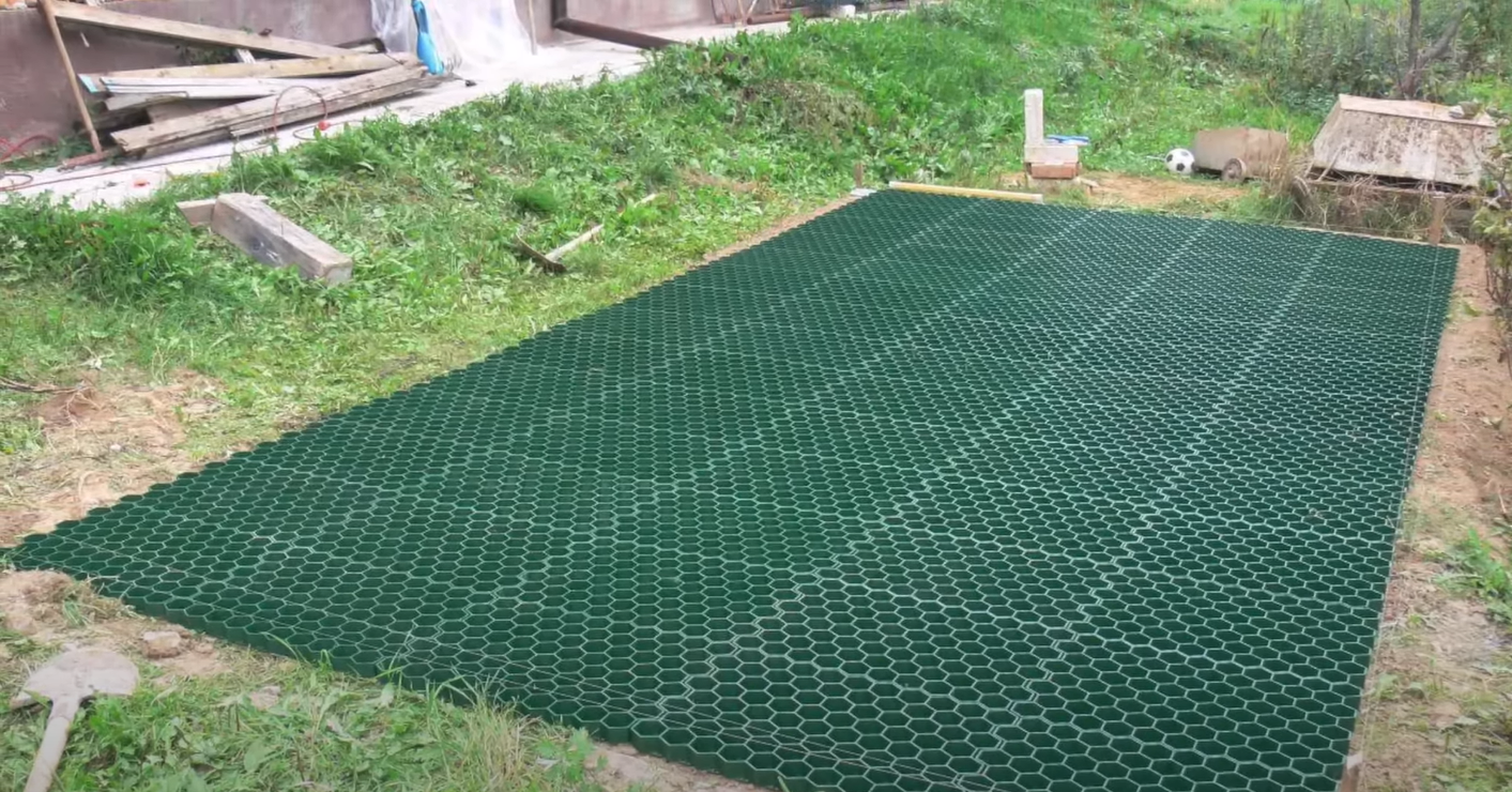 Большую востребованность приобретает инновационная методика — экологическая автопарковка на даче, себестоимость несколько дороже альтернативных решений, но экологичность и эстетичность гораздо выше. Суть состоит в следующем: формируется песчано-гравийная подушка, на которую ставят решетку из пластика или цементобетона. Через нее в последующем прорастает трава и стояночное место становится неотличимым от газона. Визуальный эффект крайне необычный.
